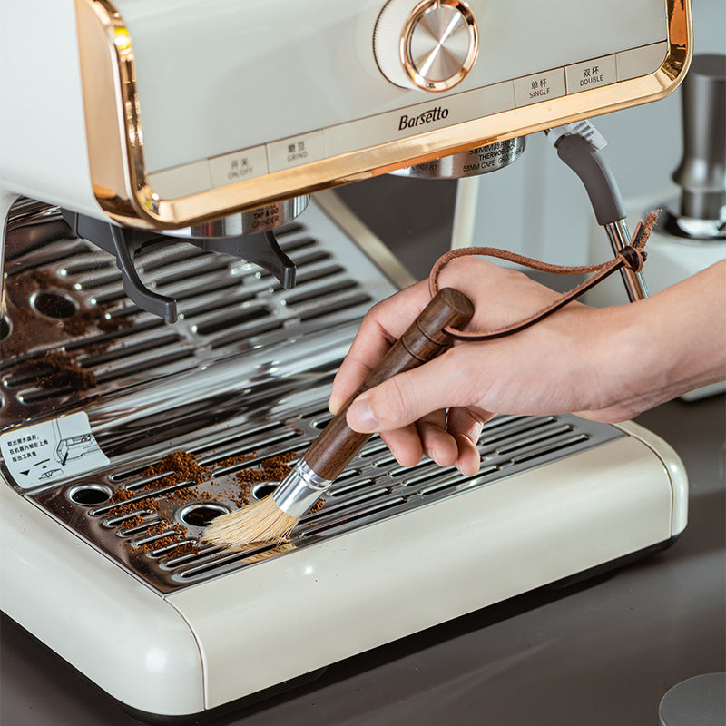 The Wooden Coffee Cleaning Brush with Natural Bristles is designed for careful, everyday maintenance of espresso machines, coffee grinders, and barista workspaces. Soft natural bristles lift loose coffee grounds and residue without scratching delicate surfaces, while the solid wooden handle offers a comfortable, balanced grip.